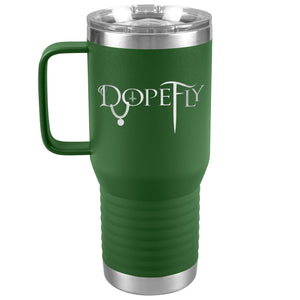 Travel the world or to your living room with your favorite drink in hand. The 20oz Travel Tumbler is constructed out of ultra durable double-wall stainless steel that is vacuum insulated, your drink will remain a consistent temperature 2x longer than your typical glass or plastic containers. Now with a solid handle and slider lid, you no longer have to worry about drops or spills!